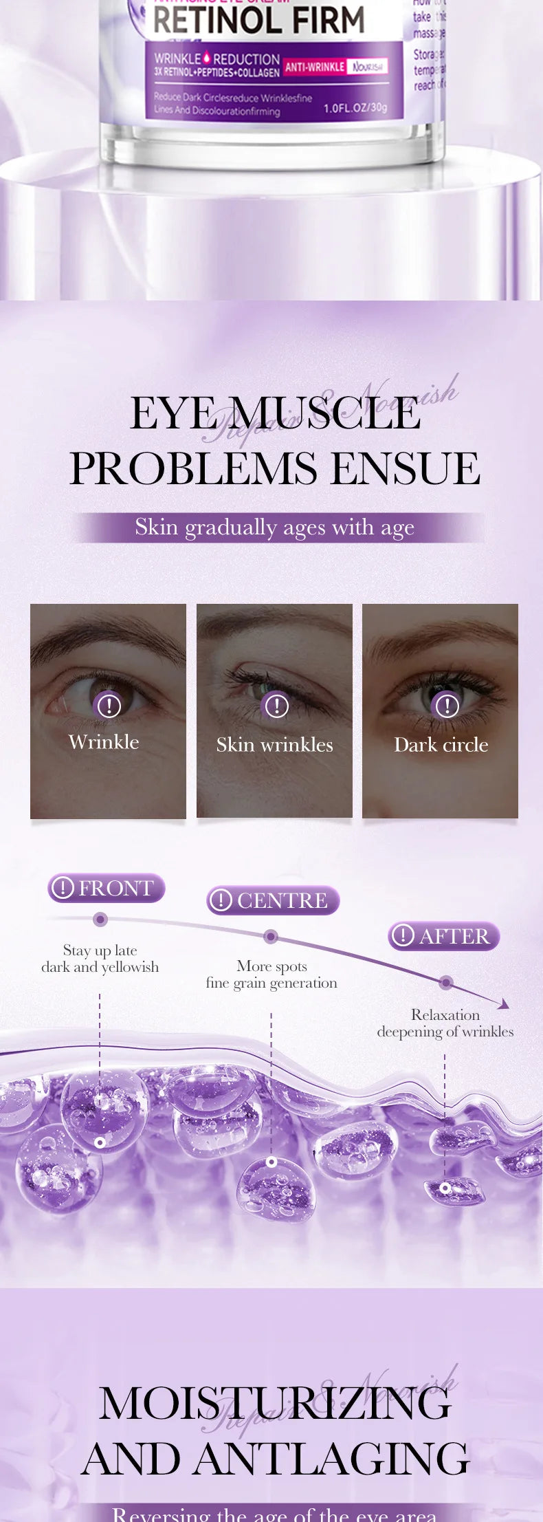 This advanced formula deeply hydrates the delicate eye area while improving elasticity and brightness. Retinol boosts cell renewal to minimize wrinkles, while natural moisturizers lock in hydration for long-lasting softness. Its lightweight, fast-absorbing texture ensures comfort and freshness without greasiness — ideal for both day and night care.